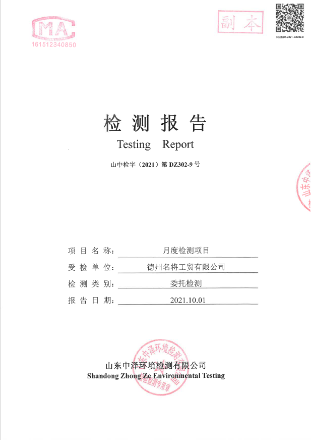名將工貿9月份廢水、廢氣檢測公示